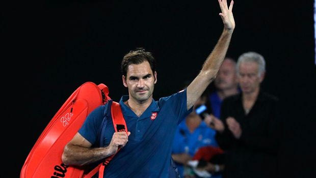 Switzerland's Roger Federer waves as he leaves Rod Laver Arena after losing his fourth round match against Greece's Stefanos Tsitsipas at the Australian Open tennis championships in Melbourne, Australia, Sunday, Jan. 20, 2019. (AP Photo/Mark Schiefelbein)