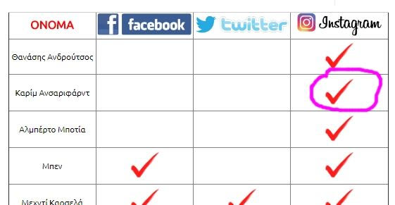 Πολλοί διαθέτουν μόνο Facebook ή Twitter ή Instagram, ενώ κάποιοι άλλοι δυο ή ακόμα και τα τρία ταυτόχρονα! Δείτε αναλυτικά ολόκληρη τη λίστα πατώντας ΕΔΩ .
