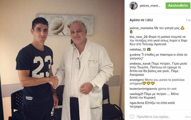 Ο Πέτρος Μάνταλος εξετάστηκε ξανά από τον γιατρό που του έκανε την επέμβαση στη μύτη και πλέον θεωρείται θέμα χρόνου η οριστική απαλλαγή του από την προστατευτική μάσκα η οποία χρησιμοποιείται προληπτικά πια.