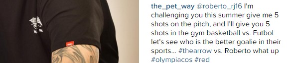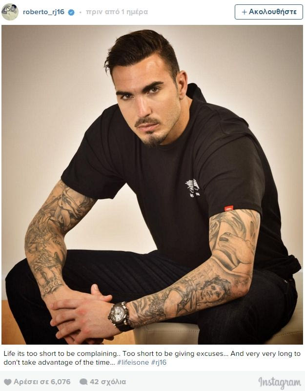 Ο τερματοφύλακας του Ολυμπιακού, Ρομπέρτο, ανέβασε μία φωτογραφία του στο instagram, σχολιάζοντας ότι: