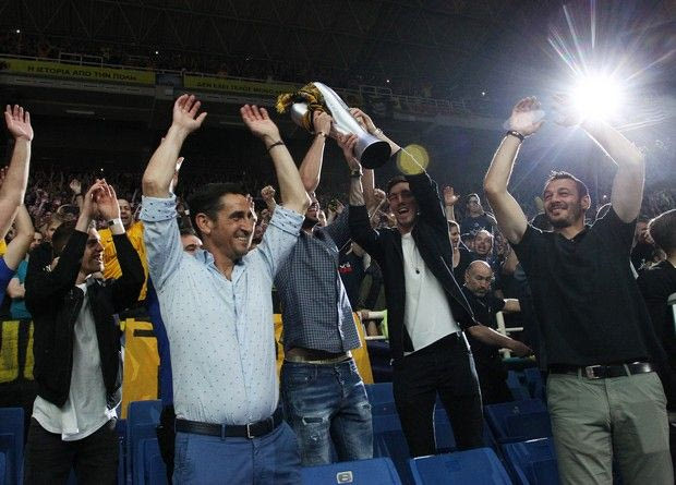 Η κούπα της πρωταθλήτριας ΑΕΚ είχε τελικό προορισμό το κλειστό των Ολυμπιακών Εγκαστάσεων. Εκεί που ο κόσμος της Ένωσης αποθέωσε τους ποδοσφαιριστές του Χιμένεθ πριν από τη μάχη με την Μονακό για το τρόπαιο του μπασκετικού Τσάμπιονς Λιγκ.