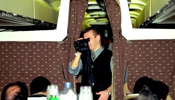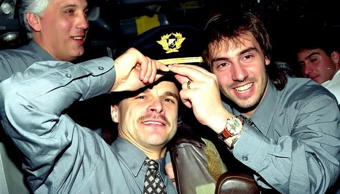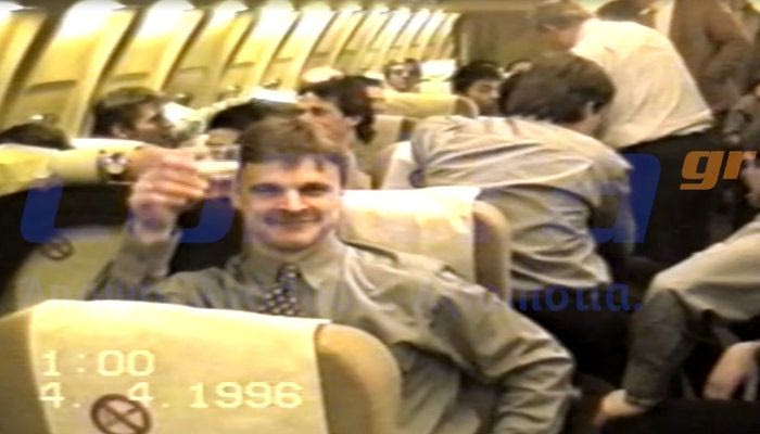 Στο ίδιο αεροσκάφος η σύζυγος του Γιώργου Βαρδινογιάννη, Αγάπη συνομιλεί σε χαλαρό ύφος με τον παράγοντα τον παραγόντων, τον Μάνο Μαυροκουκουλάκη. Πιο πίσω ο Γιάννης Καλιντζάκης, πειραχτήρι από τα λίγα, δίνει το δικό του προσωπικό σόου με ένα αναμμένο τσιγάρο στο χέρι (Γιάννη, ελπίζουμε να μας συγχωρέσεις σχεδόν 21 χρόνια μετά).