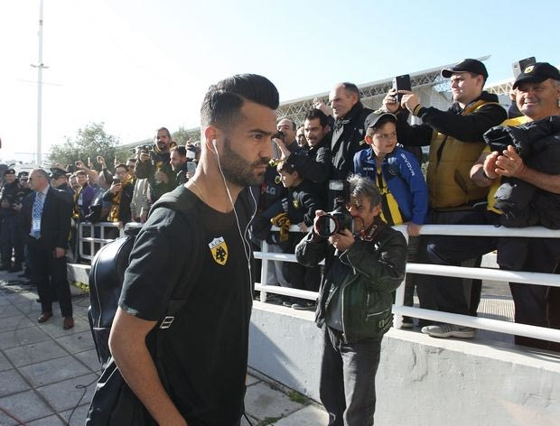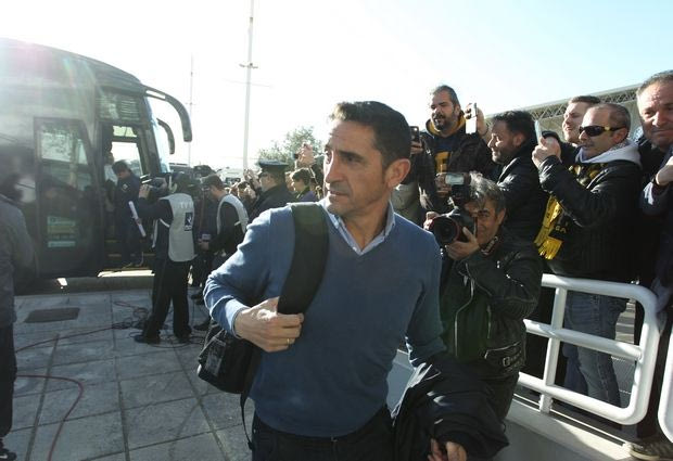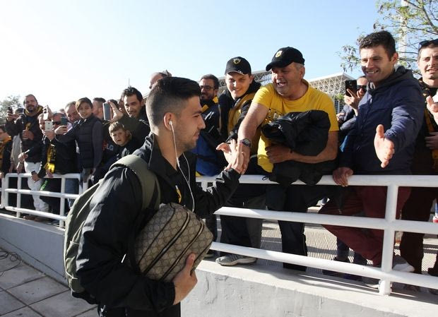 Με το που βγήκαν από το πούλμαν οι παίκτες και ο Μανόλο Χιμένεθ, ο κόσμος άρχισε να φωνάζει συνθήματα και να φωτογραφίζει τους άσους της ΑΕΚ.