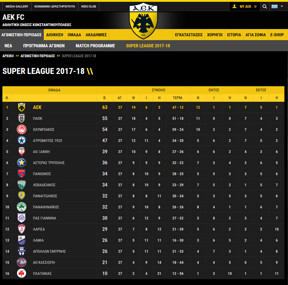 ΒΑΘΜΟΛΟΓΙΑ ΣΤΗΝ ΕΠΙΣΗΜΗ ΙΣΤΟΣΕΛΙΔΑ ΤΗΣ ΑΕΚ