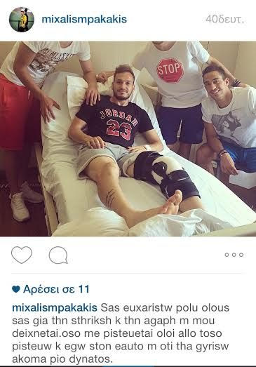 Ο Μιχάλης Μπακάκης ευχαρίστησε τον κόσμο της ΑΕΚ μέσω Instagram για τις ευχές, ύστερα από την χειρουργική επέμβαση που υπεβλήθη, τονίζοντας πως θα επιστρέψει ακόμα πιο δυνατός.