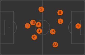 Τα γραφήματα θα δώσουν τις τελευταίες και πιο τρανές αποδείξεις. Οι παρακάτω εικόνες δείχνουν τον χώρο που κινούνται περισσότερο οι παίκτες σ’έναν αγώνα. Αυτό που λέμε, συνηθισμένες θέσεις, το που πέρασαν το μεγαλύτερο διάστημα μιας αναμέτρησης.