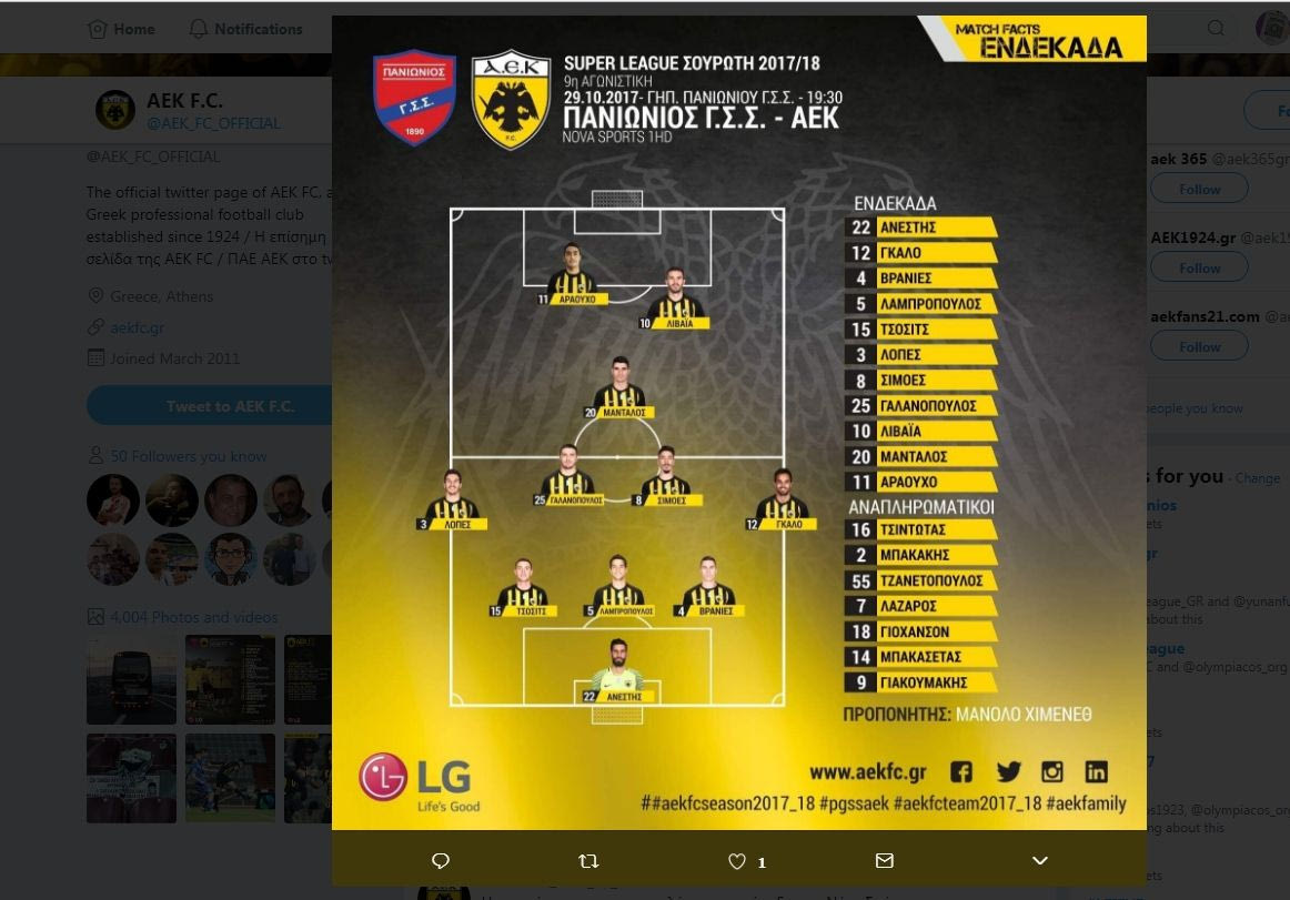 Διόρθωσαν τη… λάθος ενδεκάδα στην ΑΕΚ