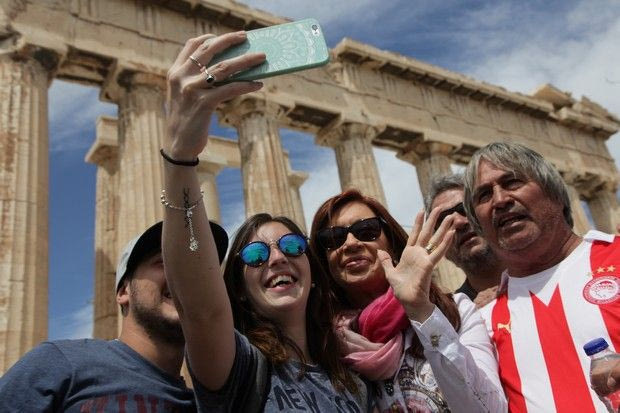 Η πρώην πρόεδρος της Αργεντινής επισκέφτηκε την Ακρόπολη. Την παράσταση ωστόσο έκλεψε ένας άνδρας που βρέθηκε δίπλα της και φορούσε φανέλα του... Ολυμπιακού. Δείτε PHOTOS+VIDEO!