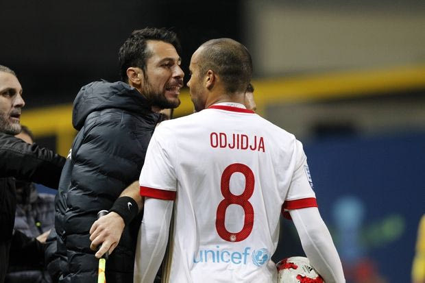 Όπως έδειξε η κάμερα της NOVA, ο Βέλγος μέσος – προφανώς επειδή κάτι …άκουσε – κατευθύνθηκε προς συγκεκριμένο σημείο του πάγκου των γηπεδούχων και ξεκίνησε έντονο… διάλογο με αντίπαλο ή αντιπάλους του που καθόντουσαν εκεί ( άγνωστο ακόμα ποιος ξεκίνησε πρώτος). Στη συνέχεια έκανε κίνηση προς το μέρος τους και φάνηκε σα να φτύνει ( δεν είναι ξεκάθαρο το πλάνο)!