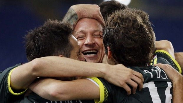 AC Milan's Philippe Mexes, center celebrates with his teammates after he scored during a Serie A soccer match between Lazio and Milan, at Rome's Olympic Stadium, Sunday, Nov. 1, 2015. (AP Photo/Andrew Medichini) AP