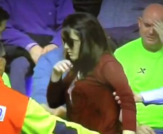 Η άτυχη φίλαθλος είδε… αστεράκια όταν άθελά της βρέθηκε… στην πορεία της μπάλας και λιποθύμησε από τους πόνους στο χέρι, με αποτέλεσμα να χρειαστεί ιατρική βοήθεια.