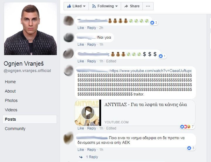 Οι φίλοι της ΑΕΚ ένιωσαν προδομένοι από τη συμπεριφορά του Βράνιες, καθώς αποτελούσε το αγαπημένο παιδί της κερκίδας. Στο τελευταίο του ποστάρισμα στο Facebook έγινε ένας μικρός πανικός από απογοητευμένους οπαδούς.