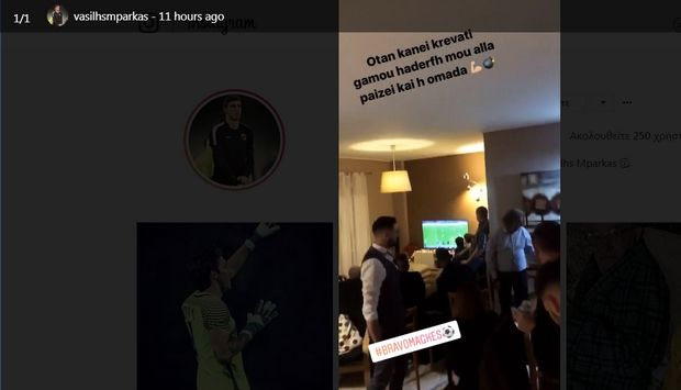 Αυτό βέβαια δεν τον εμπόδισε από το να παρακολουθήσει στην τηλεόραση τις προσπάθειες των συμπαικτών του. Το αντίθετο! Μάλιστα το μοιράστηκε και στα social media με επική ατάκα: