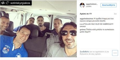 Πόσα κιλά μπάλα μπορούν να χωρέσουν σε μία φωτογραφία; Μπασινάς, Λυμπερόπουλος, Κυργιάκος, Φραντζέσκος, Κατσουράνης και Κιάσσος ετοιμάζονται για φιλικό παιχνίδι καλού σκοπού και είπαν να ανεβάσουν μία "πράσινη" selfie.