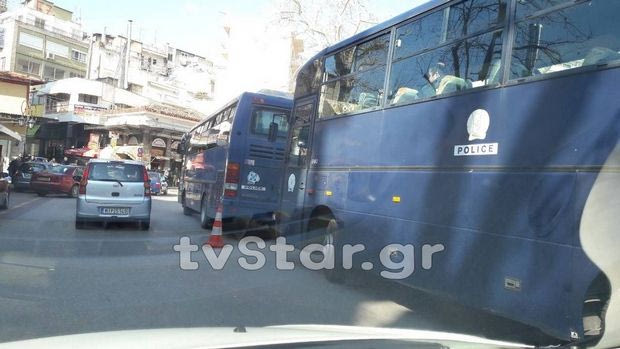 Η πόλη της Λαμίας μοιάζει με… φρούριο, αφού στους κεντρικούς δρόμους είναι έντονη η παρουσία τόσο της Αστυνομίας, όσο και των ΜΑΤ! Χαρακτηριστική η εικόνα έξω από το γήπεδο (ΔΑΚ), που περιμετρικά βρίσκονται κλούβες.