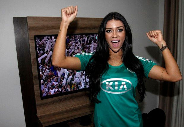 Βέβαια αυτή δεν είναι η πρώτη φορά που κάποια μοντέλο από τη Βραζιλία προχωράει σε αυτή την… γενναία κίνηση. Προ λίγων ημερών η Σίντια Βελεντίμ, φανατική οπαδός της Παλμέιρας, είχε κάνει στριπτίζ μετά την κατάκτηση του Κυπέλλου Βραζιλίας από την ομάδα της! Θυμηθείτε τις όμορφες πόζες που μας χάρισε:
