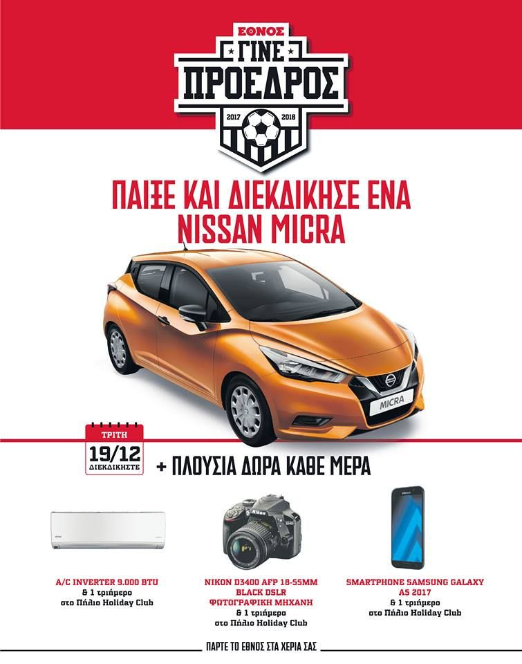 Οι καλύτεροι θα κερδίζουν πλούσια δώρα! Όπως καταλάβατε το “Γίνε Πρόεδρος” επέστρεψε με τον Έθνος και ΚΑΘΕ ΜΕΡΑ θα έχετε την ευκαιρία να αγοράζετε την εφημερίδα για να πάρετε το κουπόνι και να στείλετε τη δική σας ομάδα μέχρι το τέλος του Δεκεμβρίου.
