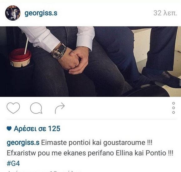 Λίγες ώρες μετά ο γιος του, Γιώργος, δήλωσε μέσω instagram περήφανος Έλληνας και Πόντιος, ανεβάζοντας μια φωτογραφία αγκαλιά με τον πατέρα του: