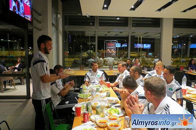 Οι ποδοσφαιριστές του Παναθηναϊκού έφαγαν σε εστιατόριο των Goody’s και γιόρτασαν τα γενέθλια του Λουκ Στιλ, ο οποίος λίγο νωρίτερα είχε πραγματοποιήσει το επίσημο ντεμπούτο του με την πράσινη φανέλα.