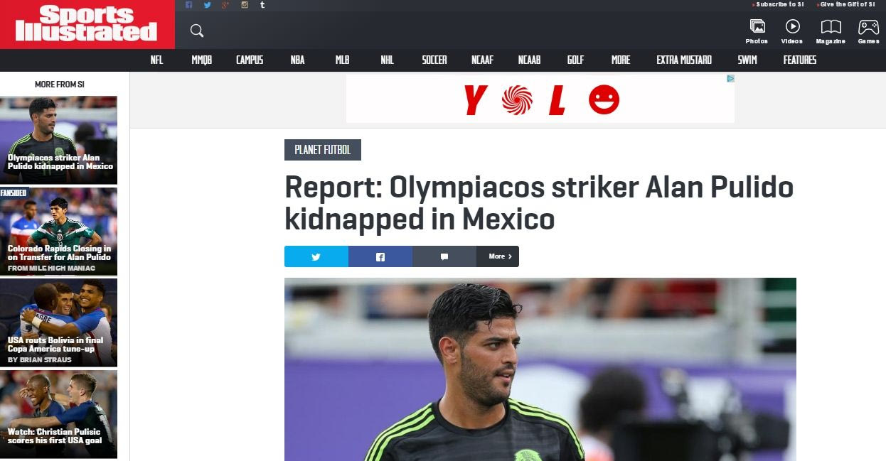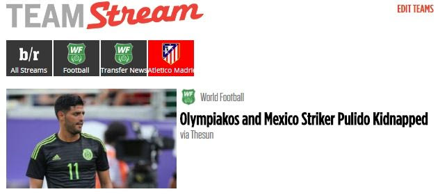 Όπως για παράδειγμα αυτή του “Bleacher Report”. Η αμερικανική αθλητική ιστοσελίδα ανέβασε την είδηση της απαγωγής του Πουλίδο, όμως αντί για φωτογραφία του άσου των “ερυθρολεύκων” έβαλε του Μεξικανού επιθετικού της Ρεάλ Σοθιεδάδ, Κάρλος Βέλα.
