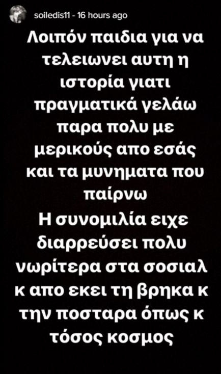 “Καλημέρα σε όλους. Είχα μια συνεργασία με μια αλυσίδα κομμωτηρίων έληξε εδώ και καιρό. Απλά δεν το ανέφερα γιατί δουλεύουν παιδιά μέσα και δεν ήθελα να δημιουργήσω πρόβλημα. Το λέω γιατί συνεχίζεται να αιωρείται ότι έχω δικό μου κομμωτήριο”.