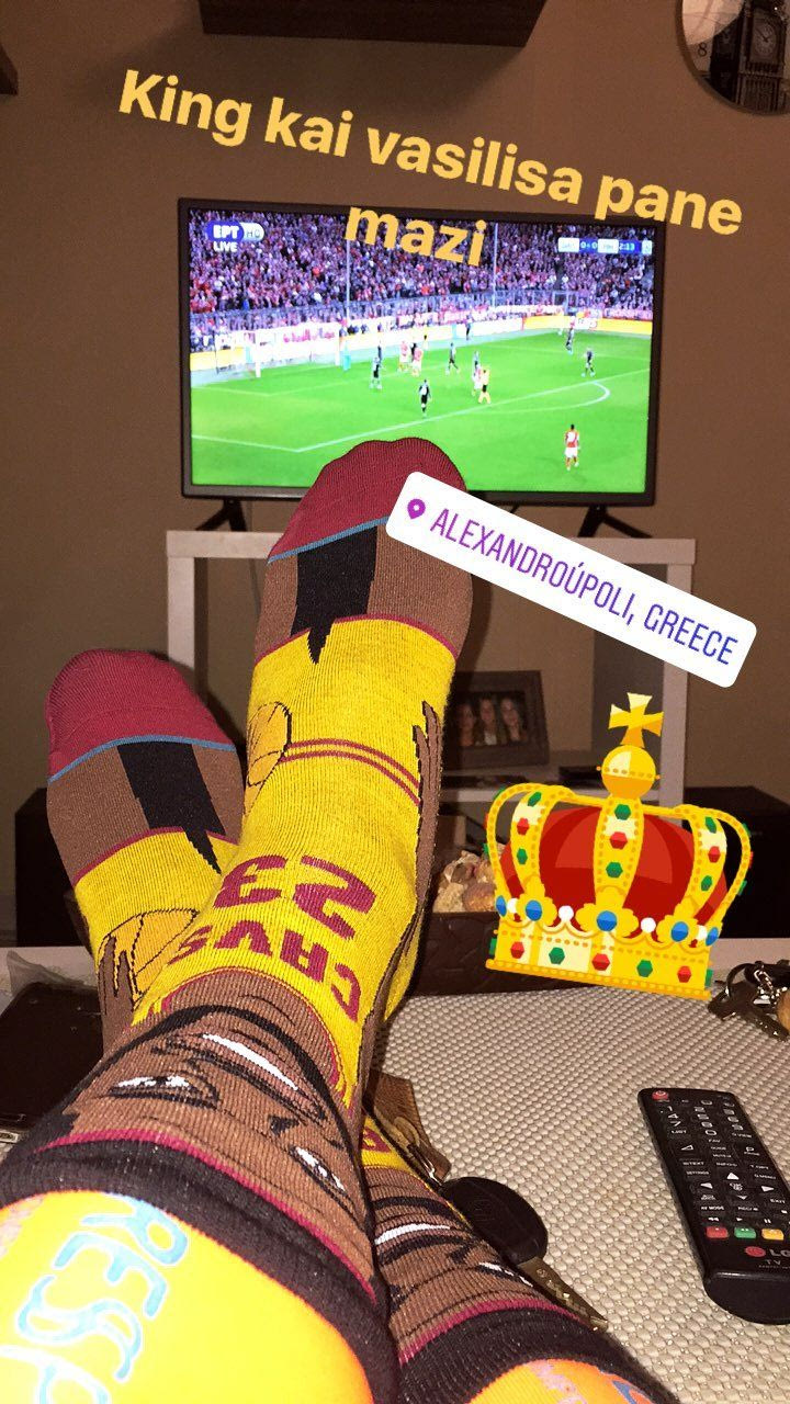 Ο Μανώλης Σιώπης κάθισε σπίτι για να παρακολουθήσει τον αγώνα της Μπάγερν με την Ρεάλ. Ο παίκτης του Πανιωνίου, φανέρωσε την… αγάπη του για την “βασίλισσα”, αλλά στη φωτογραφία που ανέβασε φαίνεται… έμπλεξε τα αθλήματα. Γιατί; Φόραγε κάλτσες με τον σούπερ σταρ των Κλίβελαντ Καβαλίερς, Λεμπρόν Τζέιμς, γράφοντας “King και βασίλισσα πάνε μαζί”.