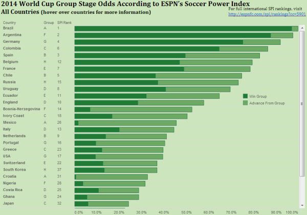 Δεδομένα είναι μεγάλο ζητούμενο η αποφυγή ήττας στην πρεμιέρα, μας το δίδαξαν και οι καλές μας διοργανώσεις (Euro 2004 και 2012) και αυτές που δεν καταφέραμε να περάσουμε (Euro 2008 και Παγκόσμιο 2010). Η ανάλυση της δύναμης των ομάδων απ’το ESPN μας δίνει 15% να βγούμε πρώτοι στον όμιλο (με την Κολομβία να έχει 65%) και ένα αξιοπρεπές 40% για να προκριθούμε ως δεύτεροι. Δεν το λες και λίγο.
