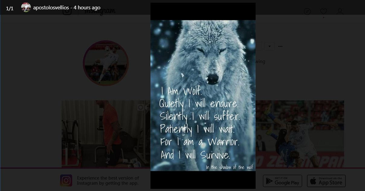 Αν κρίνουμε από το μήνυμα του Βέλλιου στο Instagram, έχει σκοπό να περιμένει μία ευκαιρία για να δείξει την αξία του.