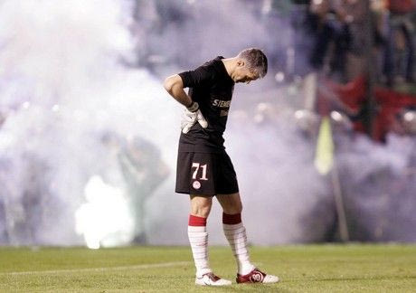 Το κλίμα ήταν ούτως ή άλλως φανατισμένο, αφού έξι αγωνιστικές πριν από το τέλος η νίκη έχριζε… πρωταθλητή. Πυροδοτήθηκε όμως ακόμη περισσότερο όταν ο Αντώνης Νικοπολίδης, persona non grata πλέον, έβγαινε για το καθιερωμένο ζέσταμα. Ξάφνου… ξημέρωσε και εν μέσω βεγγαλικών, κροτίδων, καπνογόνων, συνθημάτων και… χαρτονομισμάτων (φωτο) προσπάθησε να ολοκληρώσει μια υποτυπώδη προθέρμανση. Αντέδρασε και χειροκρότησε ειρωνικά, ενώ μετά το τέλος του αγώνα στράφηκε σε γνώριμα στελέχη της “πράσινης” ΠΑΕ. ” Ωραία τα οργανώσατε, συγχαρητήρια. Δεν εκτιμήσατε τα χρόνια μου στον Παναθηναϊκό“, έλεγε και ξανάλεγε ειρωνικά.