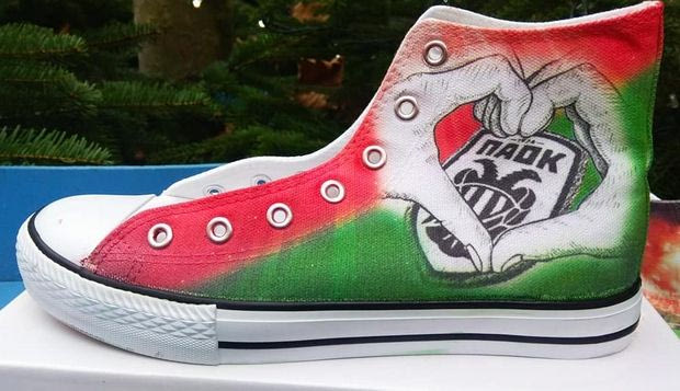 Πώς ένα κλασικό ζευγάρι παπούτσια της αγοράς μπορεί να μεταμορφωθεί σ' ένα έργο ΠΑΟΚτσήδικης τέχνης! Διαβάστε το στόρι και δείτε το εκπληκτικό αποτέλεσμα.