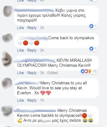 Ο Κέβιν Μιραλάς ανέβασε φωτογραφία στον προσωπικό του λογαριασμό στο Facebook με σκοπό να ευχηθεί για το νέο έτος και τα σχόλια πήραν... φωτιά. Απίστευτες ατάκες και φωτογραφίες στα... κόκκινα από τους φίλους του Ολυμπιακού.