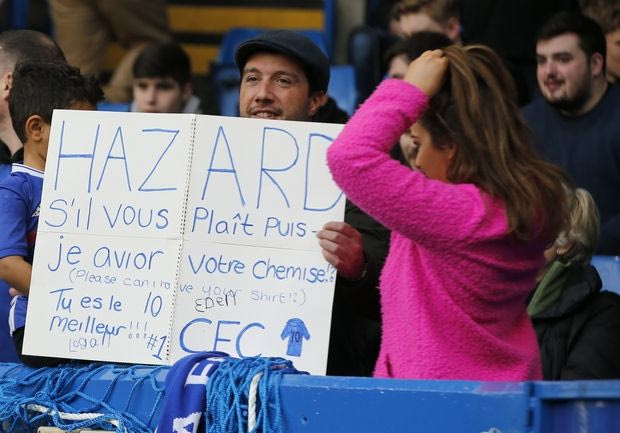 Την προηγούμενη εβδομάδα η Τσέλσι διέλυσε εκτός έδρας την Μπράιτον και ο Εντέν Αζάρ έκλεψε την παράσταση στο φινάλε του αγώνα, όταν πλησίασε ένα παιδί που του είχε ζητήσει τη φανέλα του και του την έδωσε. Πλέον, βλέποντας πως ο Βέλγος άσος είναι αρκετά γενναιόδωρος, και άλλοι φίλοι των Λονδρέζων αποφάσισαν να επιστρατεύσουν το ίδιο “τρικ”, με αποτέλεσμα στις εξέδρες του “Στάμφορντ Μπριτζ” να υπάρχουν χαρτόνια κατά τη διάρκεια του αγώνα FA Cup με την Νιούκαστλ που ζητούσαν το ίδιο πράγμα: τη φανέλα του Αζάρ!