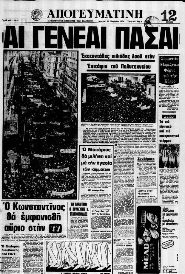 Η γκολάρα Δεληκάρη κόντρα σε Γερμανία, ο Καραμανλής κι η πρώτη πορεία για το Πολυτεχνείο