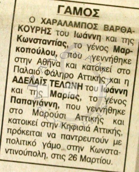 Η αναγγελία του γάμου τους, μάλιστα, δημοσιεύθηκε στην αθλητική εφημερίδα “Φίλαθλος”.