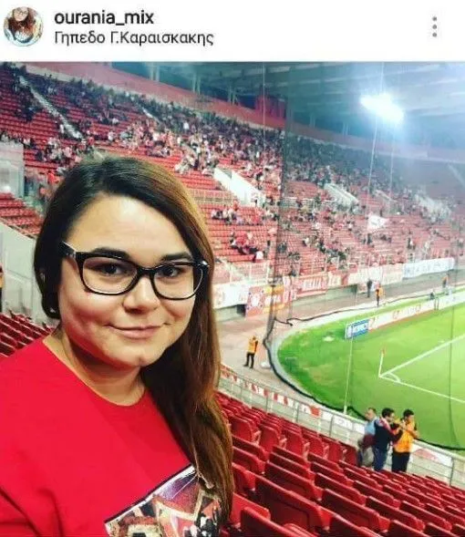 Φωτογραφία από το γήπεδο “Γεώργιος Καραϊσκάκης” έχει αναρτήσει στο λογαριασμό της στο instagram η Ουρανία Μιχαλολιάκου.