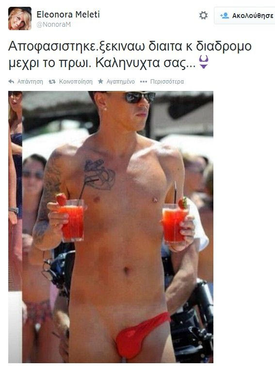 Αλλά στο τέλος το πήρε απόφαση και προκειμένου τουλάχιστον να αρέσει, δήλωσε ότι θα ξεκινήσει δίαιτα και διάδρομο ως το πρωί και καληνύχτισε τον κόσμο…
