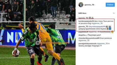 Ο Γιάννης Γιαννιώτας ανέβασε φωτογραφία του από αγώνα με τον ΑΠΟΕΛ και γνώρισε την αποθέωση από τον Κυριάκο Παπαδόπουλο στο Instagram. Σε ανάλογο ύφος η απάντησή του!