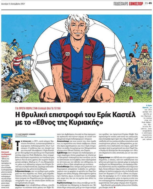 Τις προάλλες ο «CR7», κατά κόσμον Κριστιάνο Ρονάλντο, αυτοανακηρύχθηκε ο κορυφαίος ποδοσφαιριστής όλων των εποχών. Ο καθένας έχει την άποψή του και είναι καθ’ όλα σεβαστή. Ο Ερίκ Καστέλ, με τον ίδιο αριθμό στη φανέλα με τον Πορτογάλο σούπερ σταρ της Ρεάλ Μαδρίτης, ήταν αναμφίβολα ο καλύτερος συμπαίκτης των παιδικών μας χρόνων.