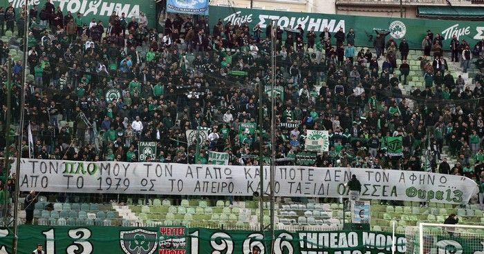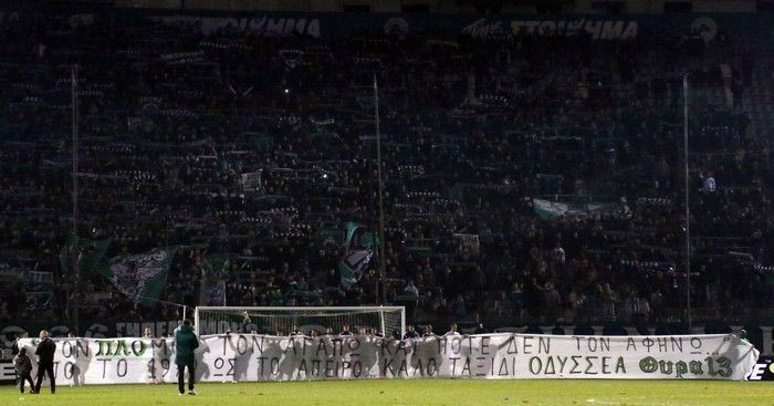 “Τον ΠΑΟ μου τον αγαπώ και ποτέ δεν τον αφήνω από το 1979 ως το άπειρο. Καλό ταξίδι Οδυσσέα”, ανέφερε το πανό που δημιούργησαν οι οργανωμένοι οπαδοί του Παναθηναϊκού και ανάρτησαν οι παίκτες μετά από το τελευταίο σφύριγμα.