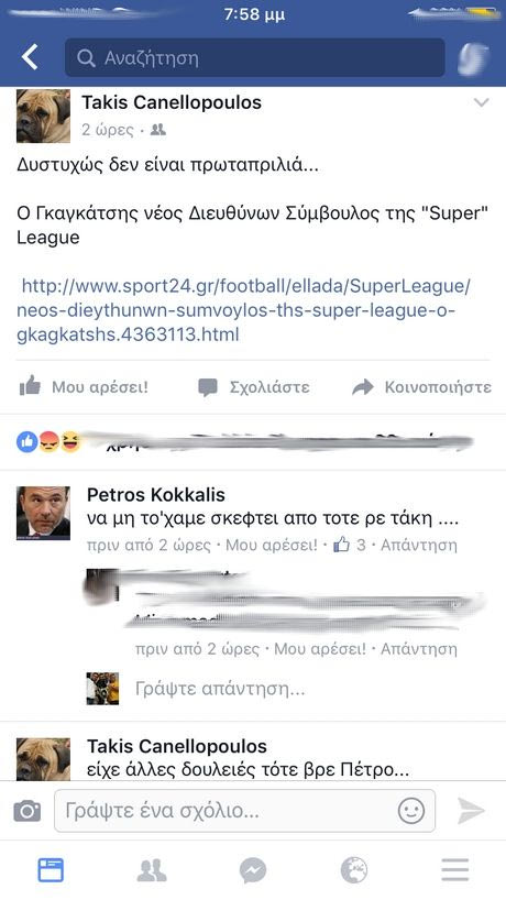 Ο άλλοτε παράγοντας της ΑΕΚ, Τάκης Κανελλόπουλος πόσταρε στη σελίδα του στο Facebook την είδηση της εκλογής του Γκαγκάτση στη Λίγκα συνοδεύοντάς την με τη λεζάντα « Δυστυχώς δεν είναι πρωταπριλιά». Μεταξύ εκείνων που σχολίασαν την ανάρτηση, ήταν και ο γιος του Σωκράτη Κόκκαλη, Πέτρος.