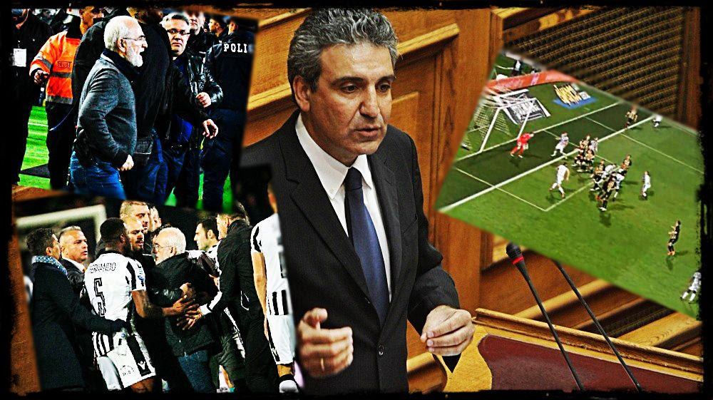 “Ποιοι ευθύνονται για το αποτέλεσμα, γι’ αυτό που περνάμε σήμερα; Μήπως ευθύνονται οι διαιτητές και στα δύο παιχνίδια; Αν δεν υπήρχαν αυτοί οι εντεταλμένοι χειρουργοί, θα τελείωναν οι αγώνες. Ήταν χειρουργείο μέσα στην Τούμπα. Εντεταλμένοι από το κατεστημένο της ποδοσφαιρικής Αθήνας, που δεν έχει αλλάξει στο καταστατικό της ότι μπορεί μια ομάδα από την επαρχία να πάρει το πρωτάθλημα. Δεν είναι δυνατόν η καλύτερη ομάδα του πρωταθλήματος να μην πάρει εφέτος το νταμπλ. Ο πρόεδρος της ομάδας μπήκε στον αγωνιστικό χώρο στο 90′, όταν η παρωδία του διαιτητή και του επόπτη, οι οποίοι ενώ μέτρησαν το γκολ, μετά από 4-5 λεπτά, και ενώ οι ΠΑΟΚτσήδες ένιωσαν ότι έχουν πάρει το πρωτάθλημα, το ακυρώνει. Από πιέσεις, βέβαια, έτσι;