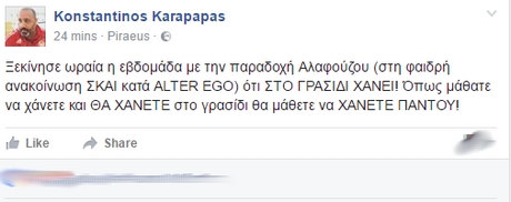 Λίγο αργότερα, ο Κωνσταντίνος Καραπαπάς πήρε θέση, ο οποίος έγραψε αναλυτικά στο facebook: