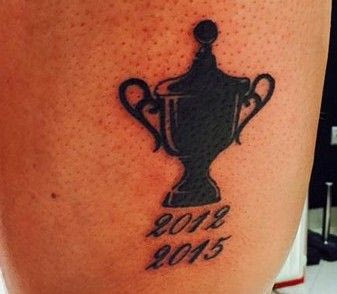 Συγκεκριμένα, στο αριστερό πόδι φαίνονται τα δύο Κύπελλα και στο δεξί τα δύο πρωταθλήματα που έχει πανηγυρίσει με τον ΠΑΟΚ.