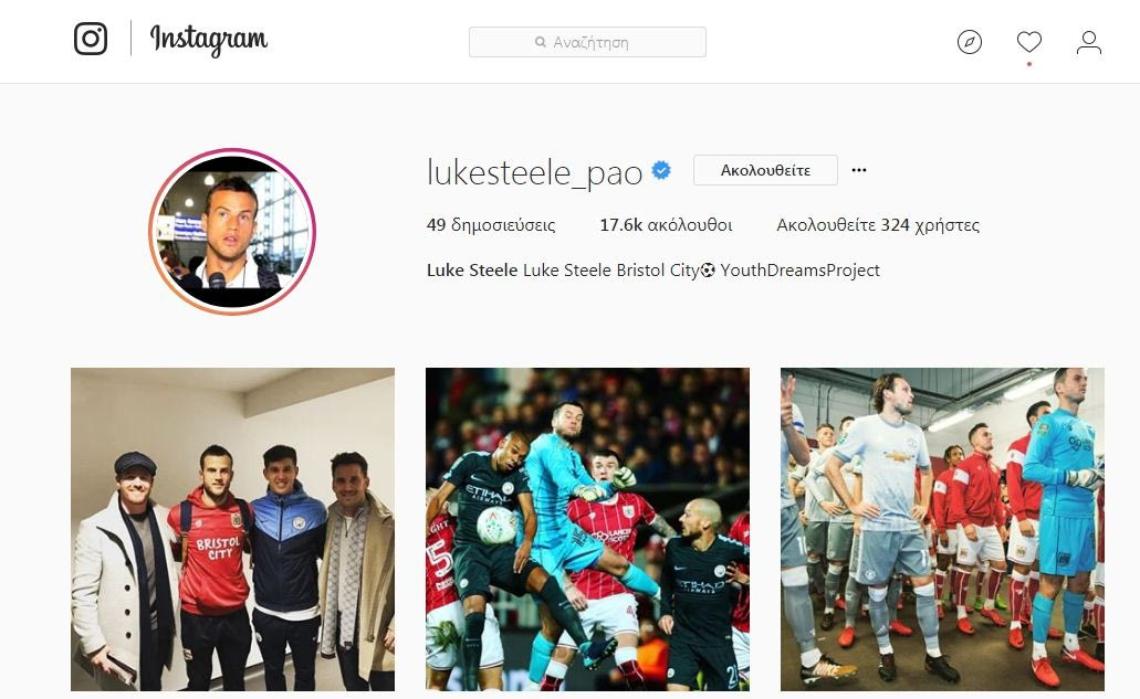 Η αγάπη του για τους “πράσινους” είναι τέτοια που ο λογαριασμός του στο Instagram έχει ακόμα το όνομα “lukesteele_pao”! Πιο… Παναθηναϊκό όνομα δηλαδή δεν γίνεται!