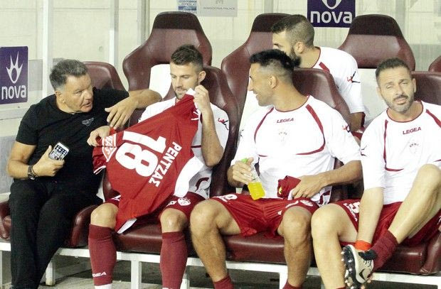 Προφανώς για να είναι κοντά στις τέσσερις γραμμές, να ζει την ένταση, να δίνει… οδηγίες (φώτο) και να διαμαρτύρεται απευθείας στους διαιτητές τόσο στη διάρκεια του 45λεπτου όσο και στην ανάπαυλα.