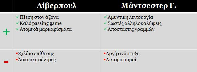 -Στο δεύτερο ημίχρονο ο Φέργκιουσον με την αλλαγή του Νάνι με τον Σκόουλς αποσκοπούσε να γεμίσει τον άξονα για να κόψει το passing game της Λίβερπουλ και να γεμίσει το κενό που άφηνε η περιορισμένη κίνηση του Γκιγκς στον χώρο.