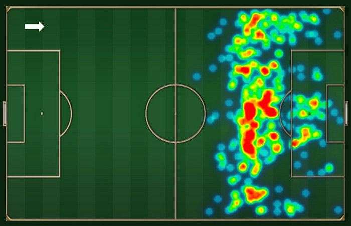 Το ίδιο και στο γράφημα των σημείων που παίρνει την μπάλα ο Ρούνεϊ: μπορεί ο Ρούνεϊ να έπαιζε και φέτος στον άξονα, όμως στο δεύτερο γράφημα φαινόταν πως παίζει πολύ λιγότερο κεντρικά και έπαιρνε περισσότερο την μπάλα βγαίνοντας στα άκρα. Κίνηση που δεν μπορεί να μην αποδοθεί σε οδηγία.