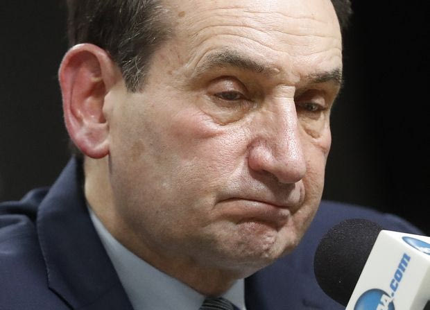 Duke head coach Mike Krzyzewski pauses while answering questions at a news conference after losing to Michigan State in a NCAA men's East Regional final collage basketball game in Washington, Sunday, March 31, 2019. Michigan State won 68-67. (AP Mark Tenally} AP