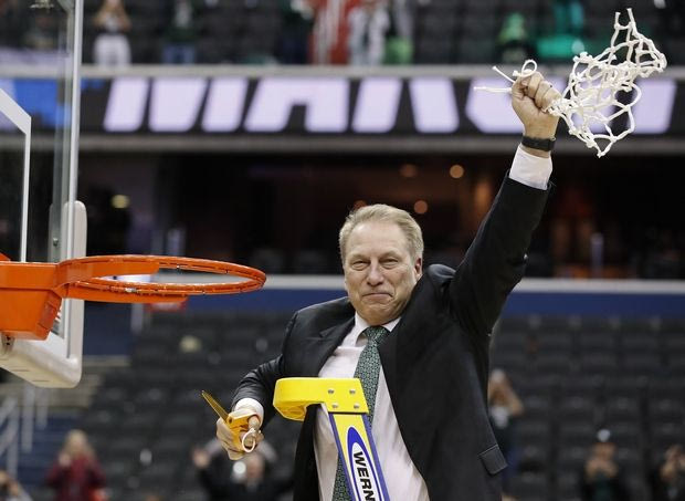 Michigan State head coach Tom Izzo holds up the net after defeating Duke in an NCAA men's East Regional final college basketball game in Washington, Sunday, March 31, 2019. Michigan State won 68-67. (AP Photo/Alex Brandon) AP