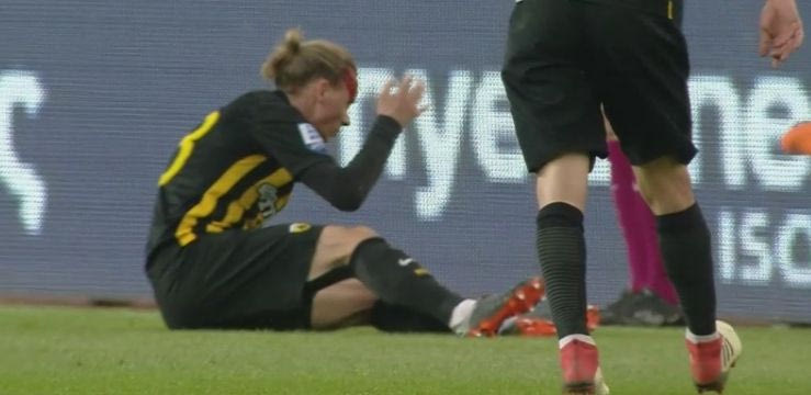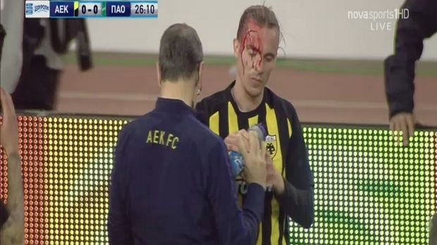 Ευτυχώς δεν είχε κάτι σοβαρό και συνέχισε το παιχνίδι με… μπαταρισμένο το πρόσωπο, αφού του έκαναν ράμματα εντός του γηπέδου!